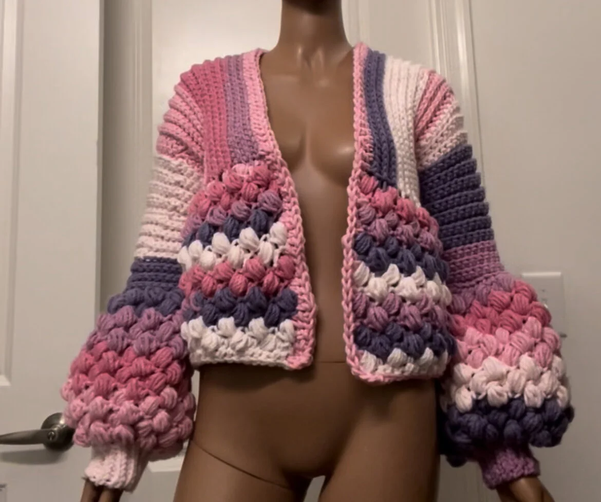 The Heavy Hitter Cardigan is a floor length ultra plush cardigan. It weights about 4-6lbs which is how it got its name. The pictures shown is a sample made by me and represent my first 5 orders. I will continue to update photos as new items are made. You can select and confirm the color(s) and design for your Heavy Hitter via text or email. The Heavy Hitter Cardigan cost $300 plus $60 for shipping and you can expect delivery in 3-5 weeks.
