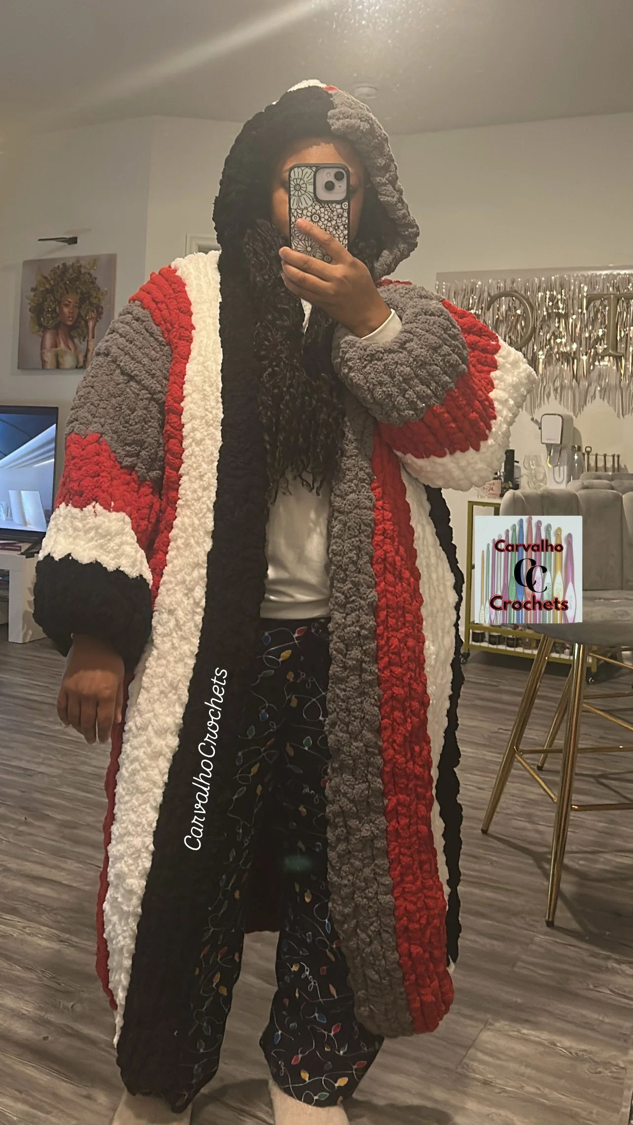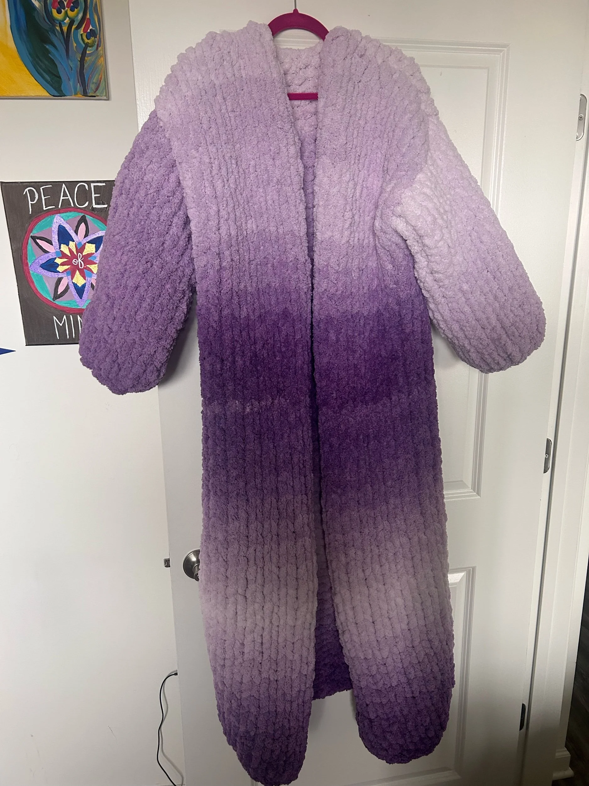 This custom cardigan is a 1 of 1. You are in complete control. You select the colors and let me do the rest. You will receive a sketch to approve the design and progress pictures along the way. This sweater takes 3 weeks to make and shipping is included in the price.